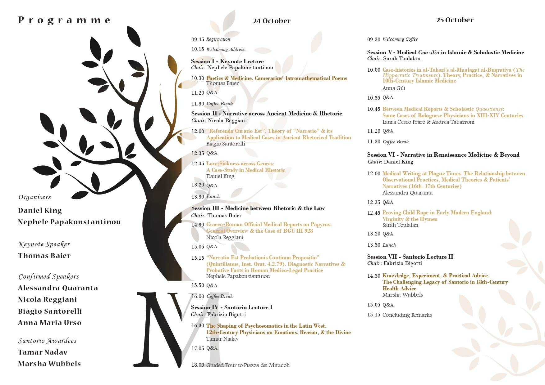 Our research team members, Laura Cesco-Frare and Andrea Tabarroni, will take part in the international VivaMente conference Narratio in Medicine and the Law: Interpretative and Scientific Knowledge in Medical and Medico-Legal Case Histories from Antiquity to the Renaissance, with a talk titled Between Medical Reports and Scholastic Quaestiones: Some Cases of Bolognese Physicians in XIII-XIV Centuries.