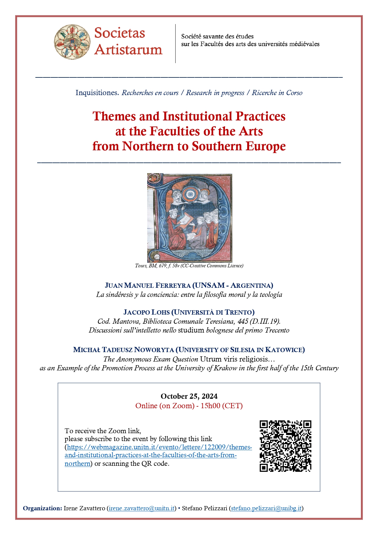 In the second session of the seminar series Inquisitiones: Research in Progress, organised by the Societas Artistarum, our research team member Jacopo Lohs will discuss a Mantuan codex concerning the problem of the intellect in the Bolognese studium.
